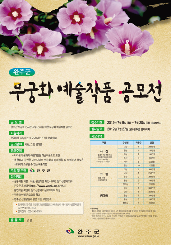 ○ 공 모 명 : 완주군「무궁화 전시관」작품 전시를 위한 무궁화 예술작품 공모전