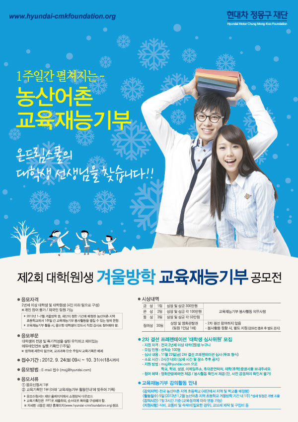 현대차 정몽구 재단 제2회 대학(원)생 겨울방학 교육재능기부 공모전