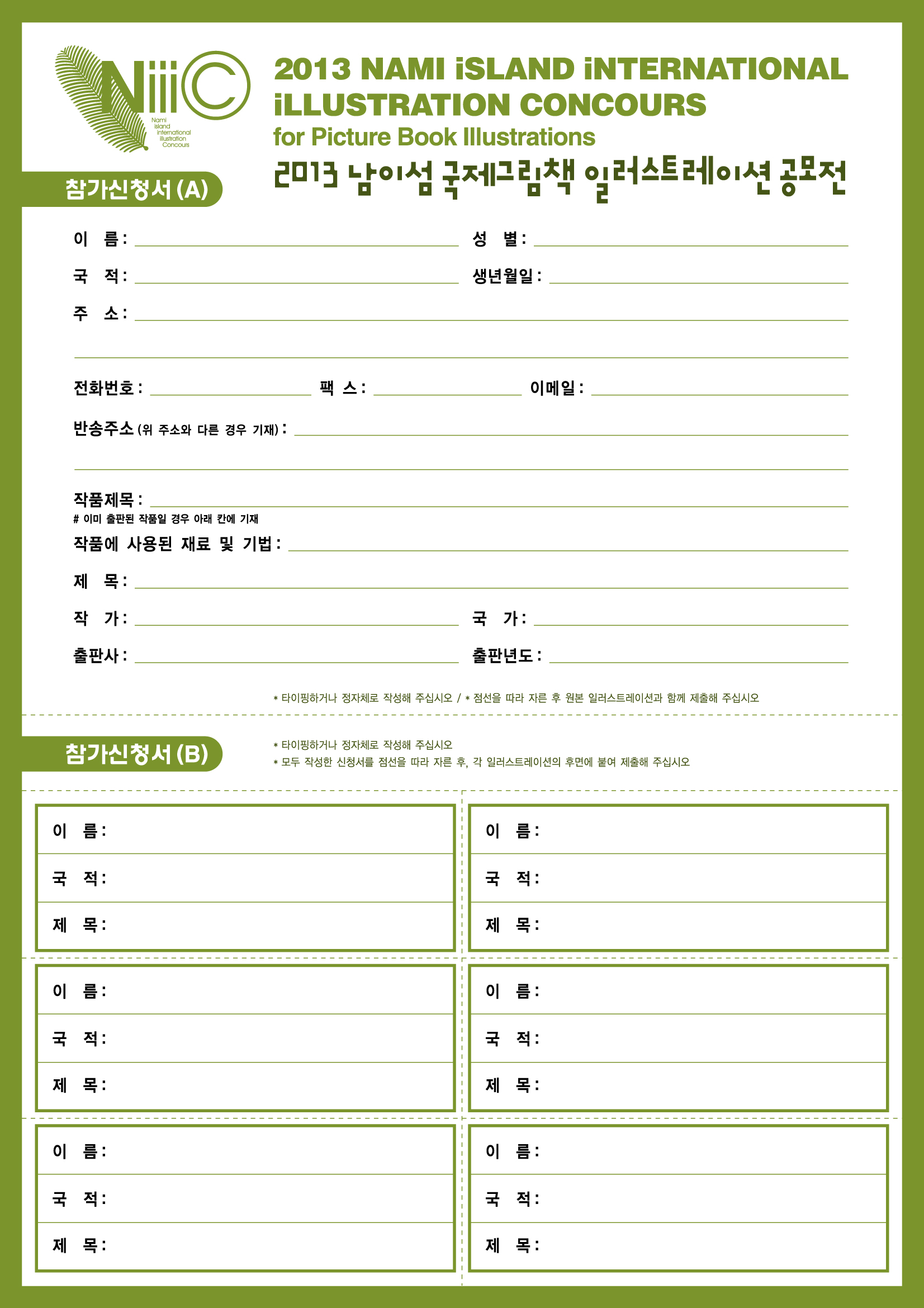 2013 제1회 남이섬 국제그림책 일러스트레이션 공모전