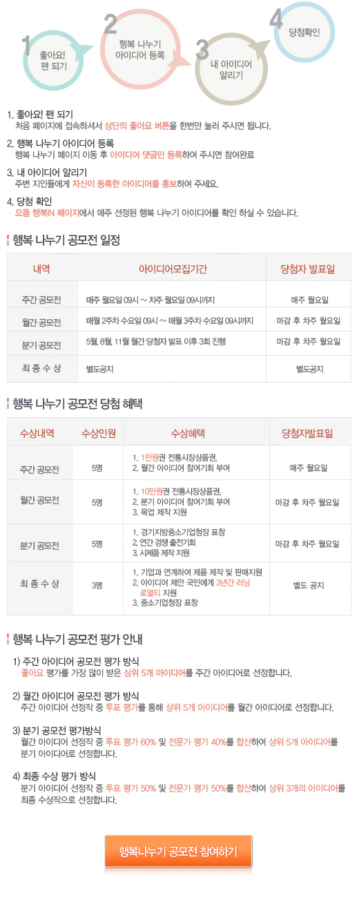 ※ 행복 나누기 아이디어 등록 : 행복 누나기 페이지 이동 후 아이디어 댓글만 등록