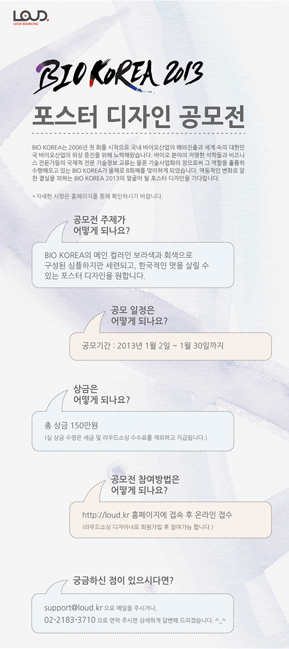 - BIO KOREA의 메인 컬러인 보라색과 회색으로 구성된 심플하지만 세련되고, 한국적인 멋을 살릴 수 있는 포스터 디자인을 원합니다.