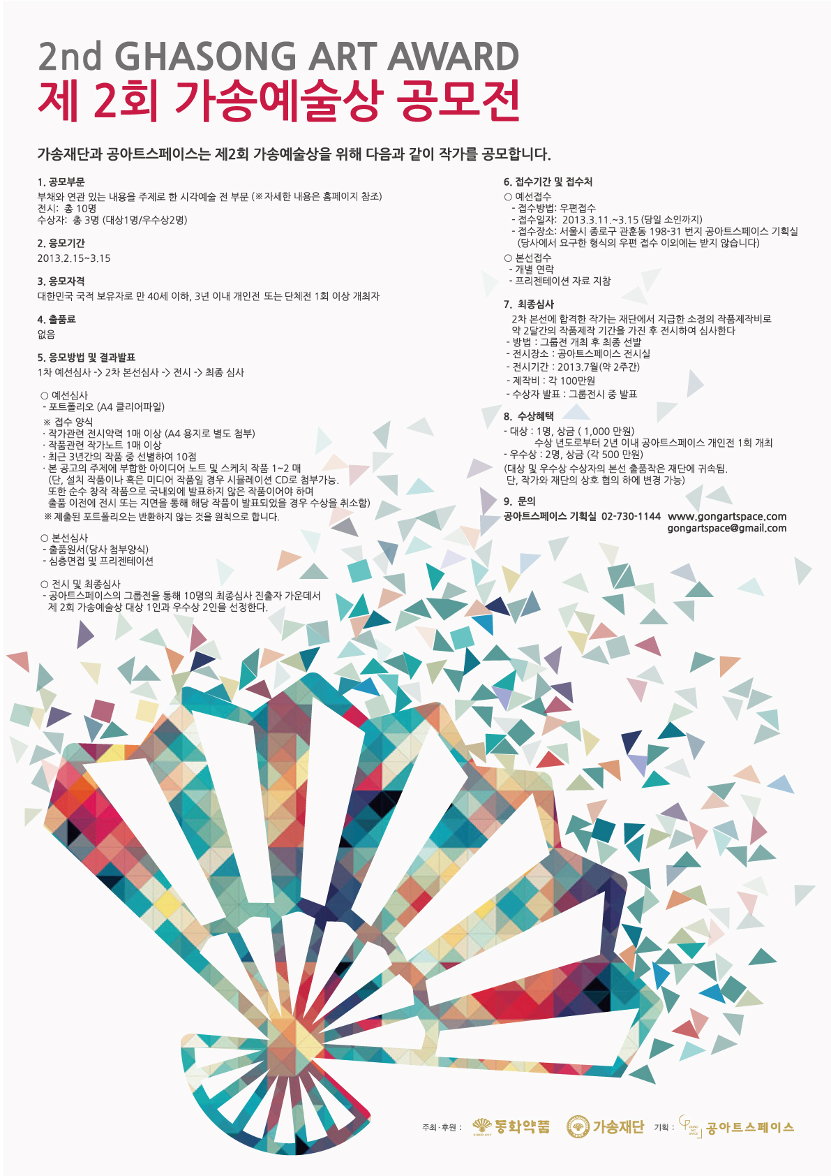 - 접수장소 : 서울시 종로구 관훈동 198-31번지 2층 공아트스페이스 기획실