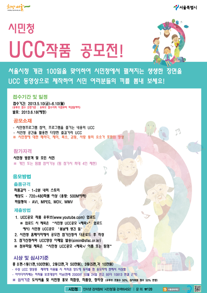 ※ 첨부파일 제목은 “시민청 UCC공모< 제목> / 이름 또는 팀명”