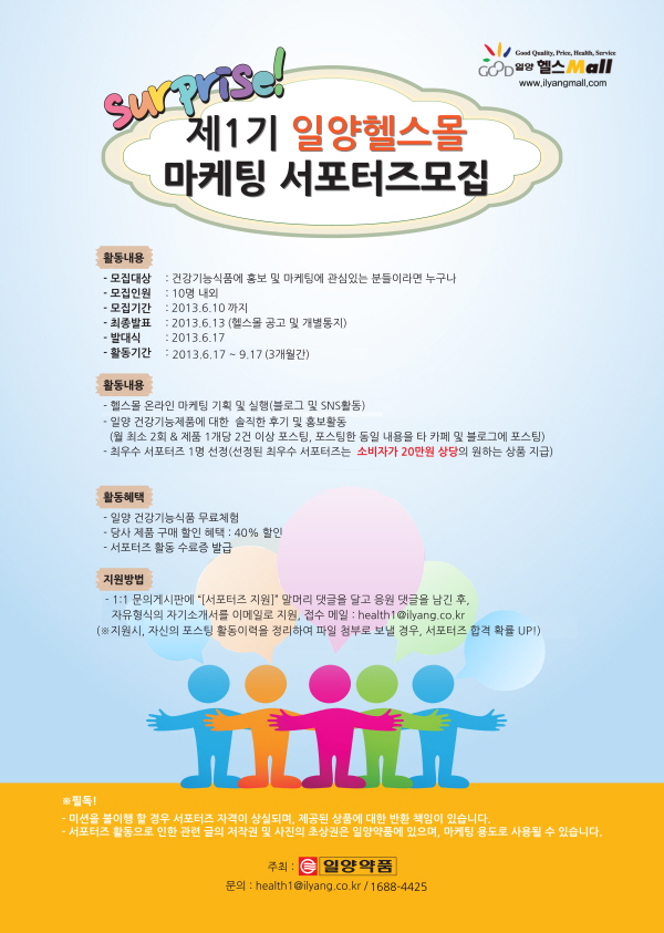 드디어 일양 공식 쇼핑몰 헬스몰의 제 1기 서포터즈를 모집합니다!
