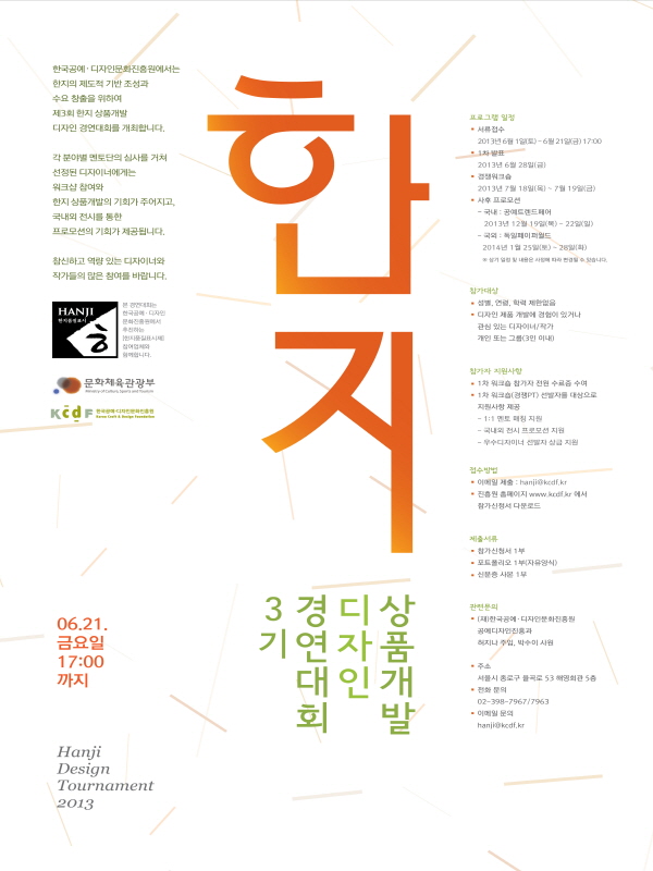 발전적인 한지 상품개발 프로그램을 운영하기 위해 디자인 경연대회 3기를 운영하고자 합니다. 분야별 자문위원과 멘토단의 심사를 거쳐