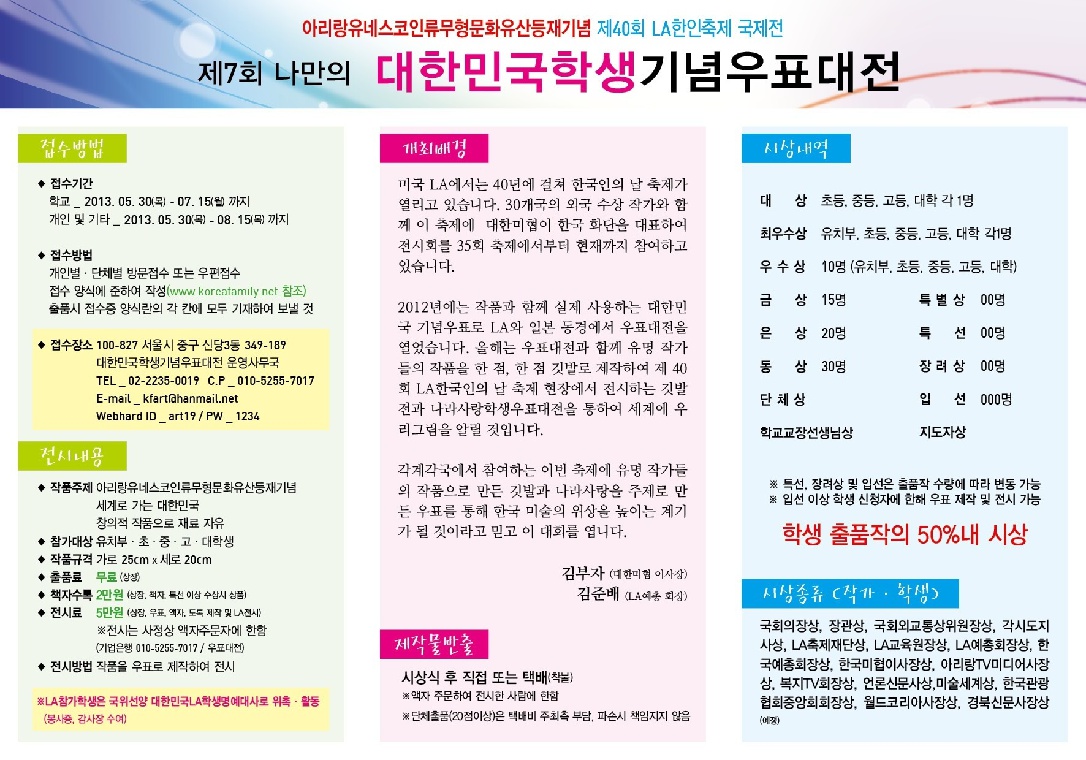 * 입선 이상 학생 신청자에 한해 우표 제작 및 전시 가능