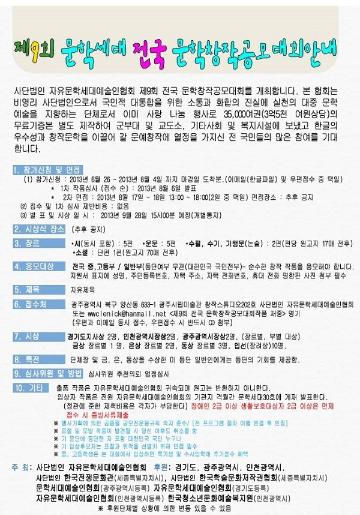 - 시(동시 포함) : 5편, 운문 : 5편, 수필 수기, 기행문(논술) : 2편(편당 원고지 17매~20매)
