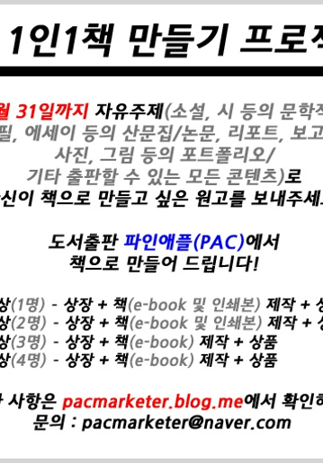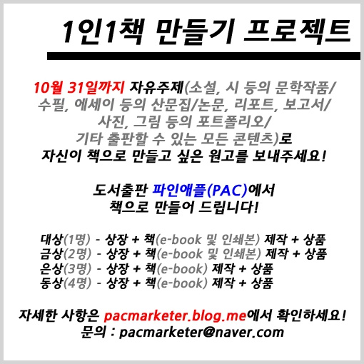 - 수상작 중 상업용으로 출판되는 경우, 저작권은 도서출판 파인애플(PAC)에게 귀속됨.