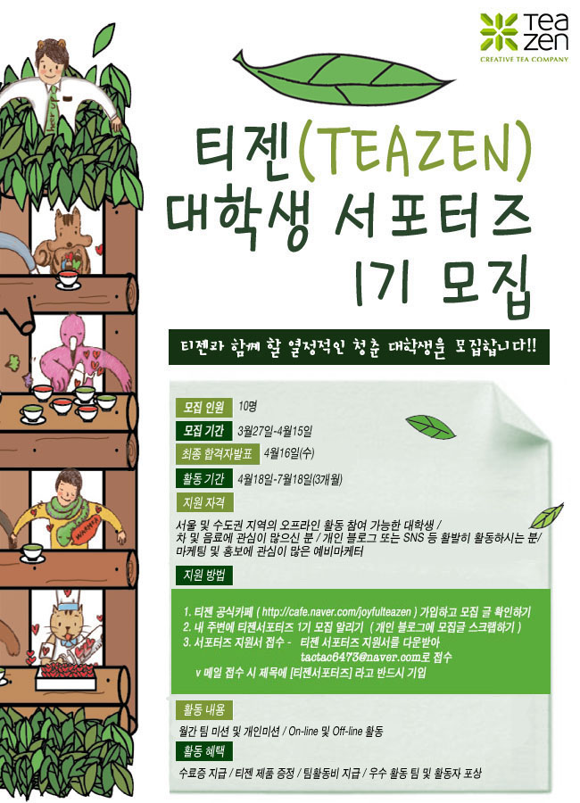 국내 기능성차(茶) 전문 브랜드 티젠이 대학생 서포터즈 1기를 모집합니다!