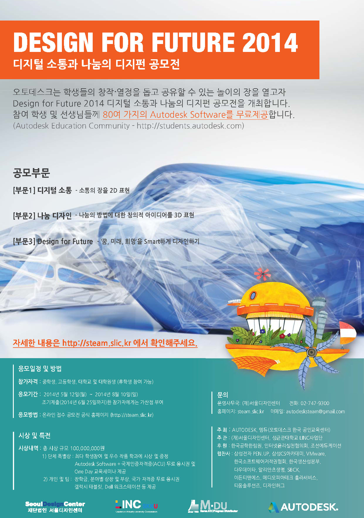 - 디자인 작품은 공모전 홈페이지 (http://autodesk.slic.kr) 통해 결과발표