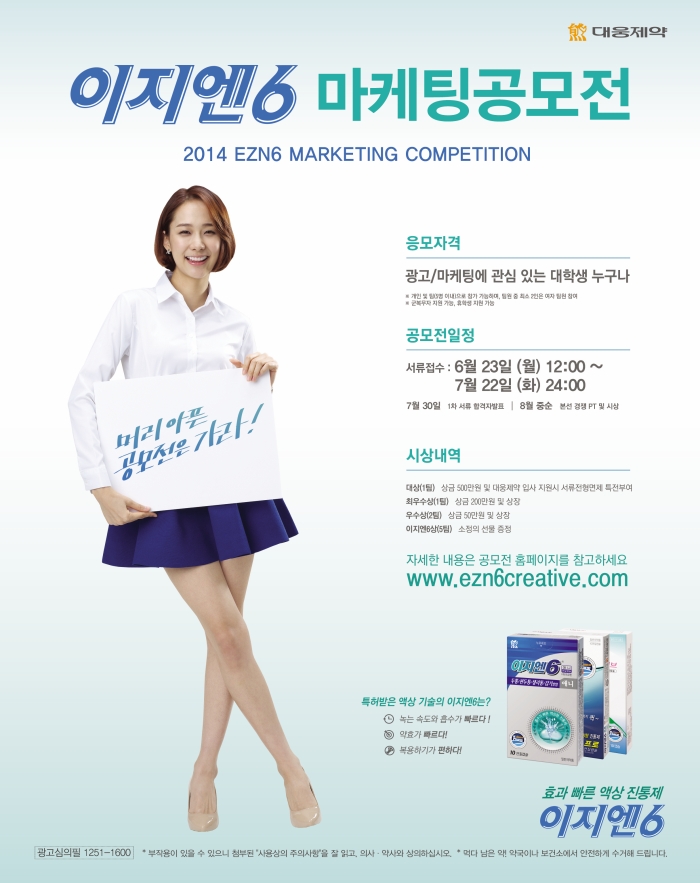 - 대상(1팀) : 상금 500만원 및 대웅제약 입사 지원시 서류전형면제 특전 부여