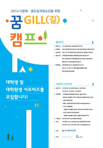 다문화.중도입국자녀 대상 '꿈GILL(길) 캠프' 서포터즈단 모집