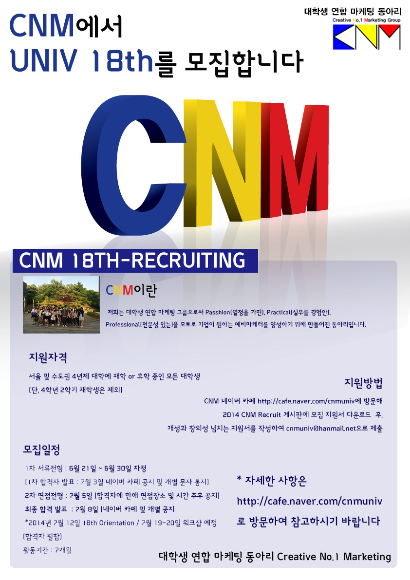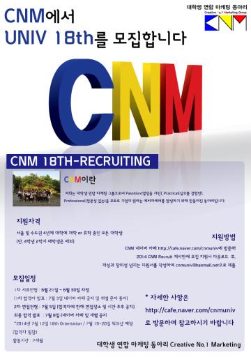 대학생연합마케팅그룹 CNM에서 18th를 모집합니다!!