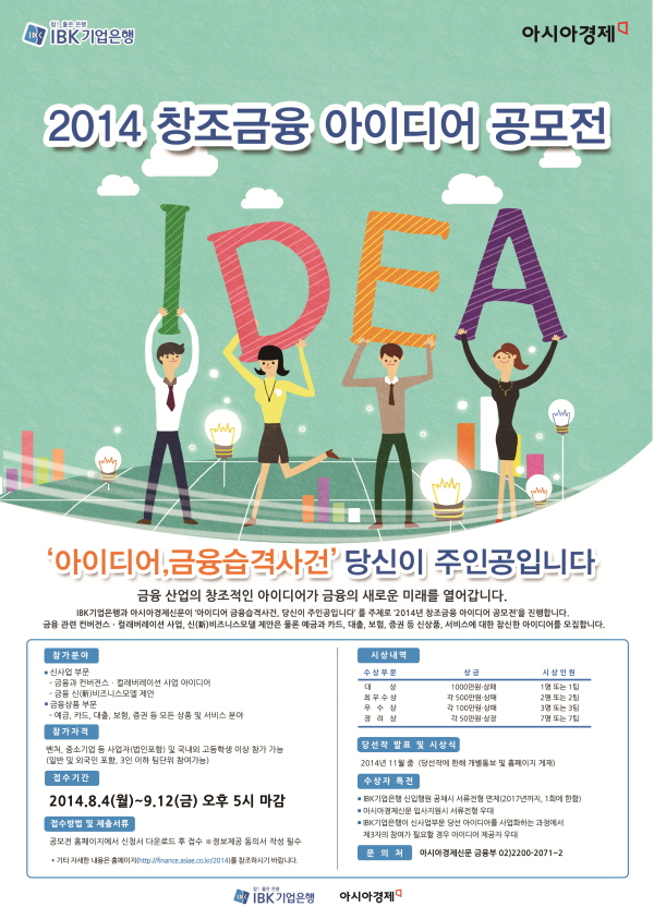 2014 창조금융 아이디어 공모전 IBK기업은행과 아시아경제신문이