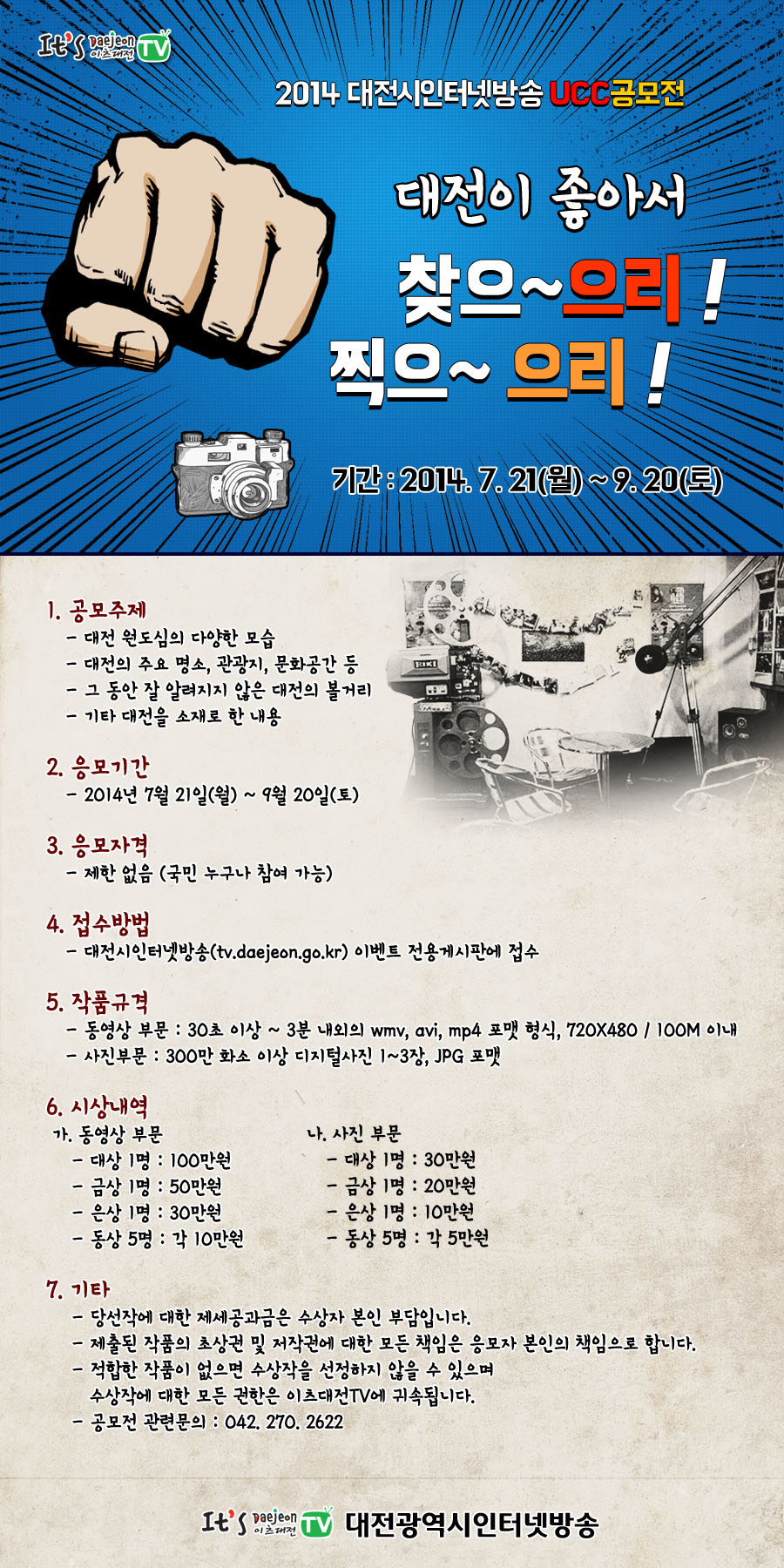 - 대전시인터넷방송 (tv.daejeon.go.kr) 이벤트 전용게시판에 접수