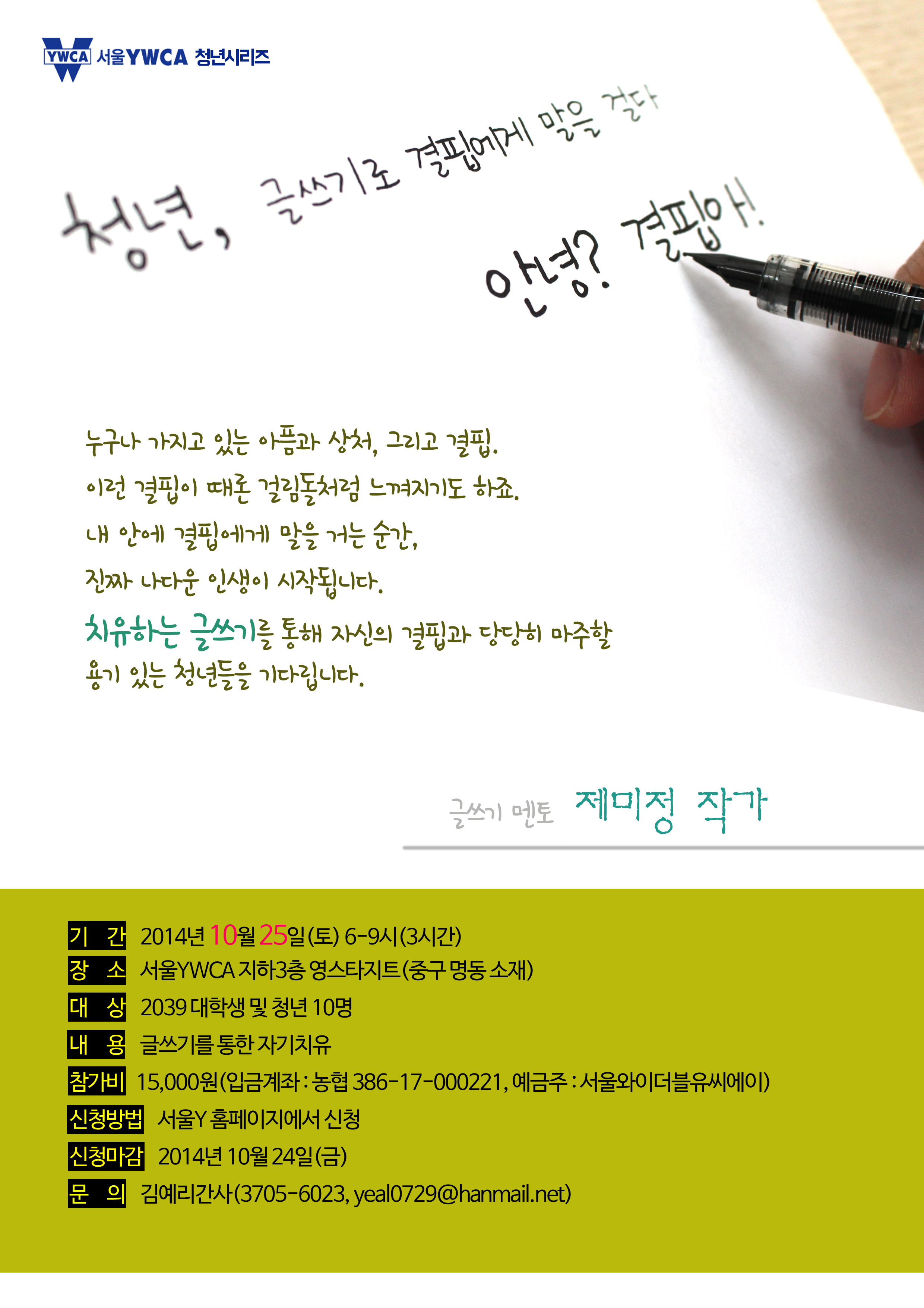[서울YWCA 청년 시리즈] 청년, 글쓰기로 결핍에게 말을 걸다