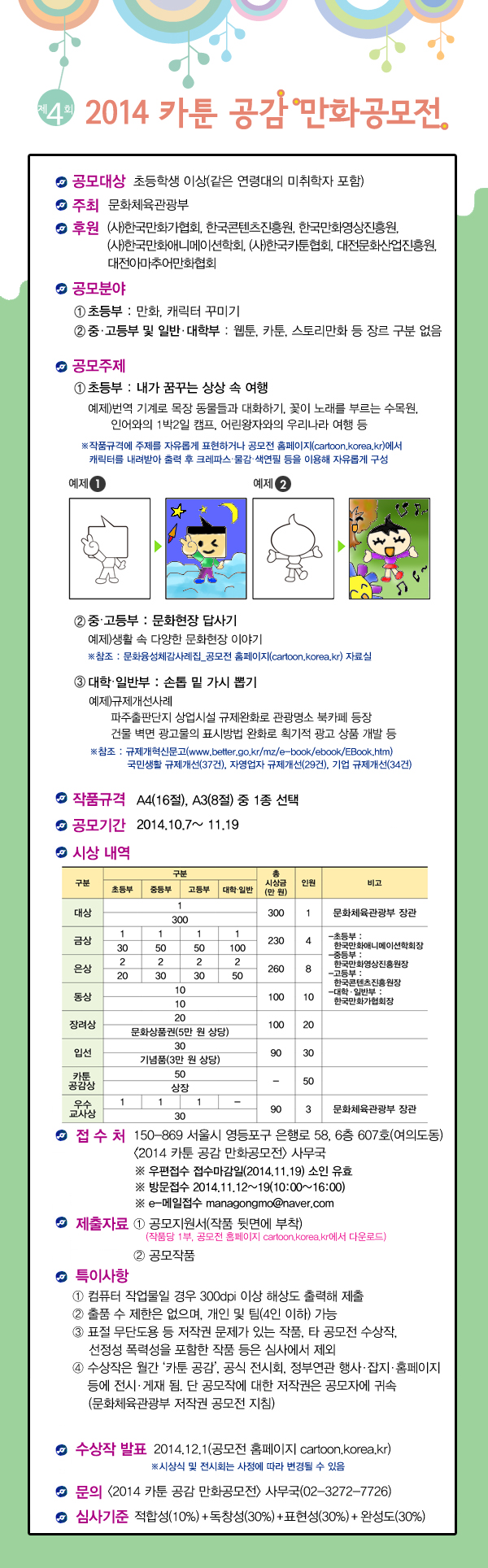 - 자세한 내용은 공모전 홈페이지(cartoon.korea.kr)를 참고