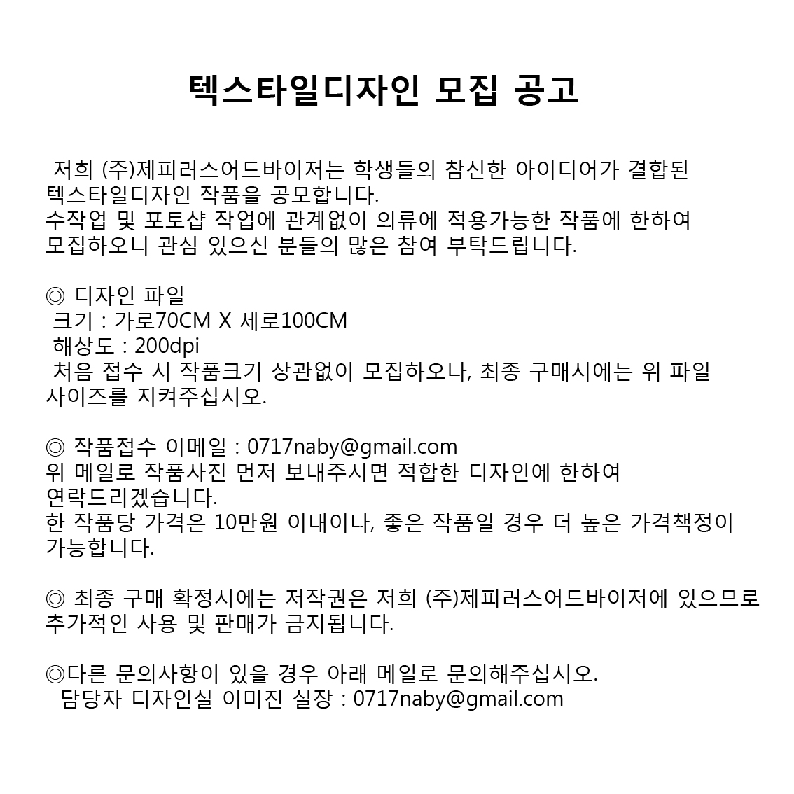 - 위 메일로 작품사진 먼저 보내주시면 적합한 디자인에 한하여 연락드리겠습니다.
