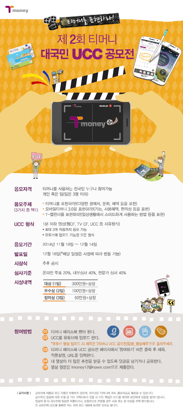 * 유튜브 영상 업로드 시 제목은 ' [티머니 ucc 공모전]팀명_영상제목' 으로 올려주세요.