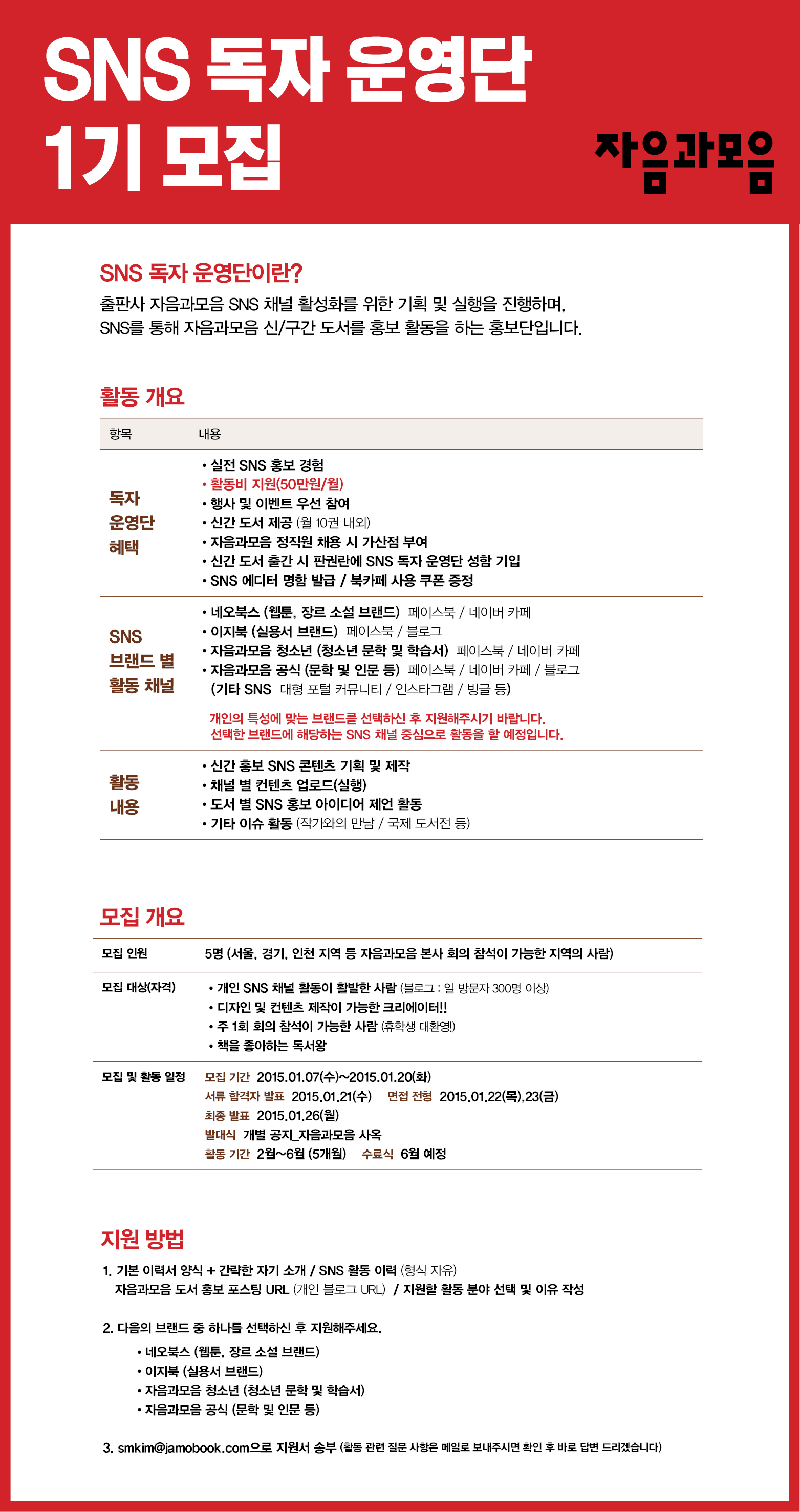[자음과모음 출판사] SNS 독자 운영단 1기 모집! ~01.20