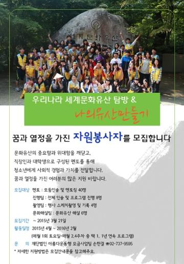 우리나라 세계문화유산탐방 & ' 나의유산만들기'  멘토 및 봉사자 모집