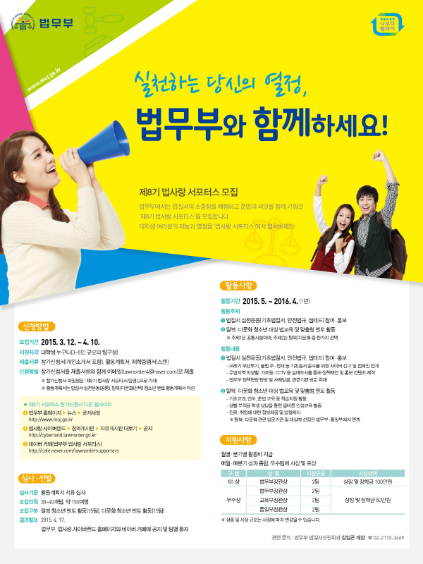 - 결과 발표 : 2015. 4. 17. 법무부, 법사랑 사이버랜드 홈페이지와 네이버 카페에 공지 및 팀별 통지