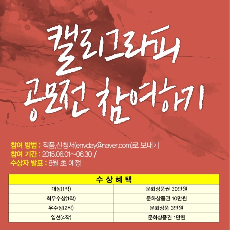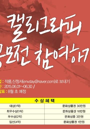 - 작품제출신청서(첨부파일), 이미지파일을 (envday@naver.com)로 제출(메일제목:캘리그라피_출품자의 성명)