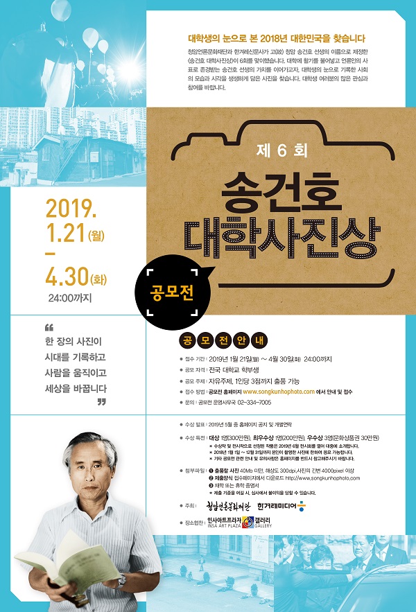 - 자세한 내용은 송건호 대학사진상 공모전 홈페이지를 방문하여 확인하시기 바랍니다.