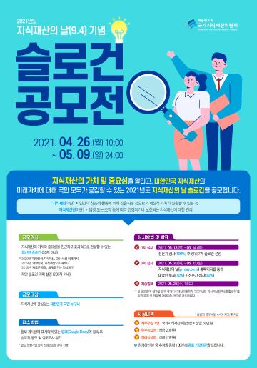 - 본 공모전에 참가할 경우 국가지식재산위원회가 '2021년도 지식재산정책소통활성화'를 위한 복제 및 전송을 허락하는 것으로 간주합니다.