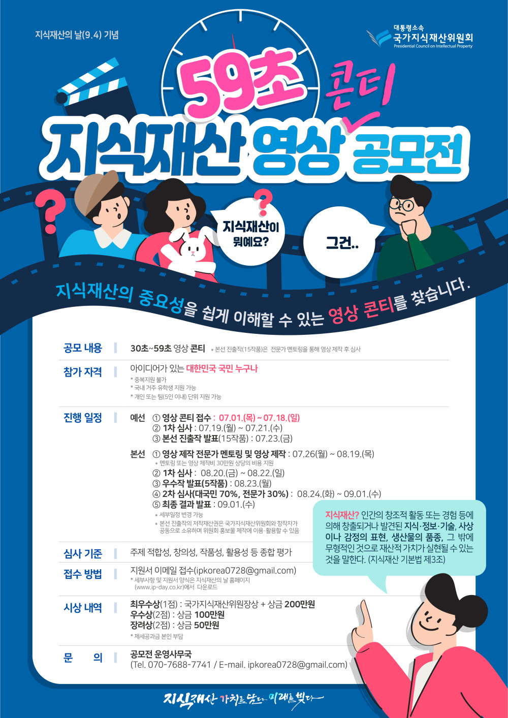 - 공모전 운영사무국(Tel. 070-7688-7741 / E-mail : ipkorea0728@gmail.com)