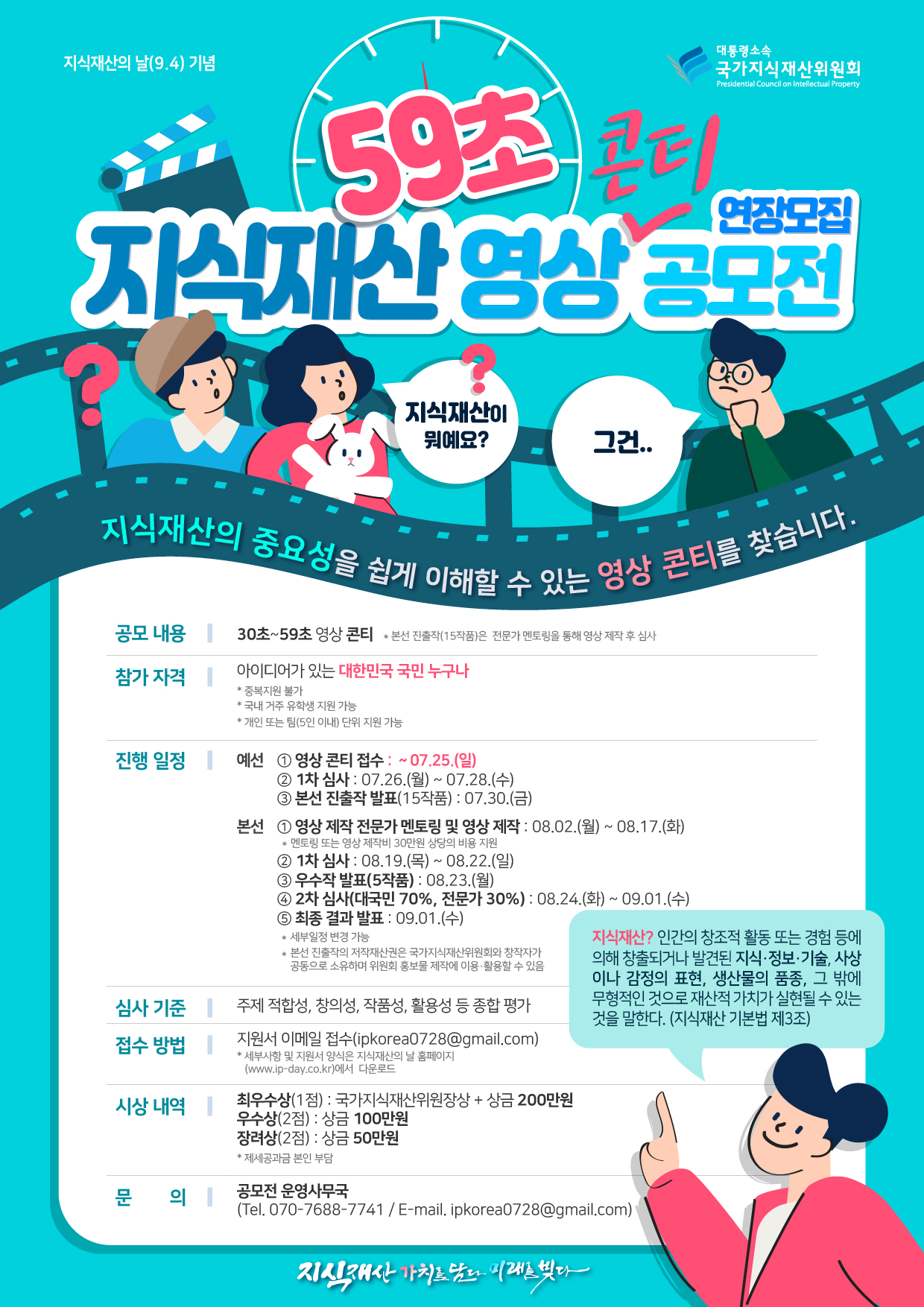 - 공모전 운영사무국(Tel. 070-7688-7741 / E-mail. ipkorea0728@gmail.com)