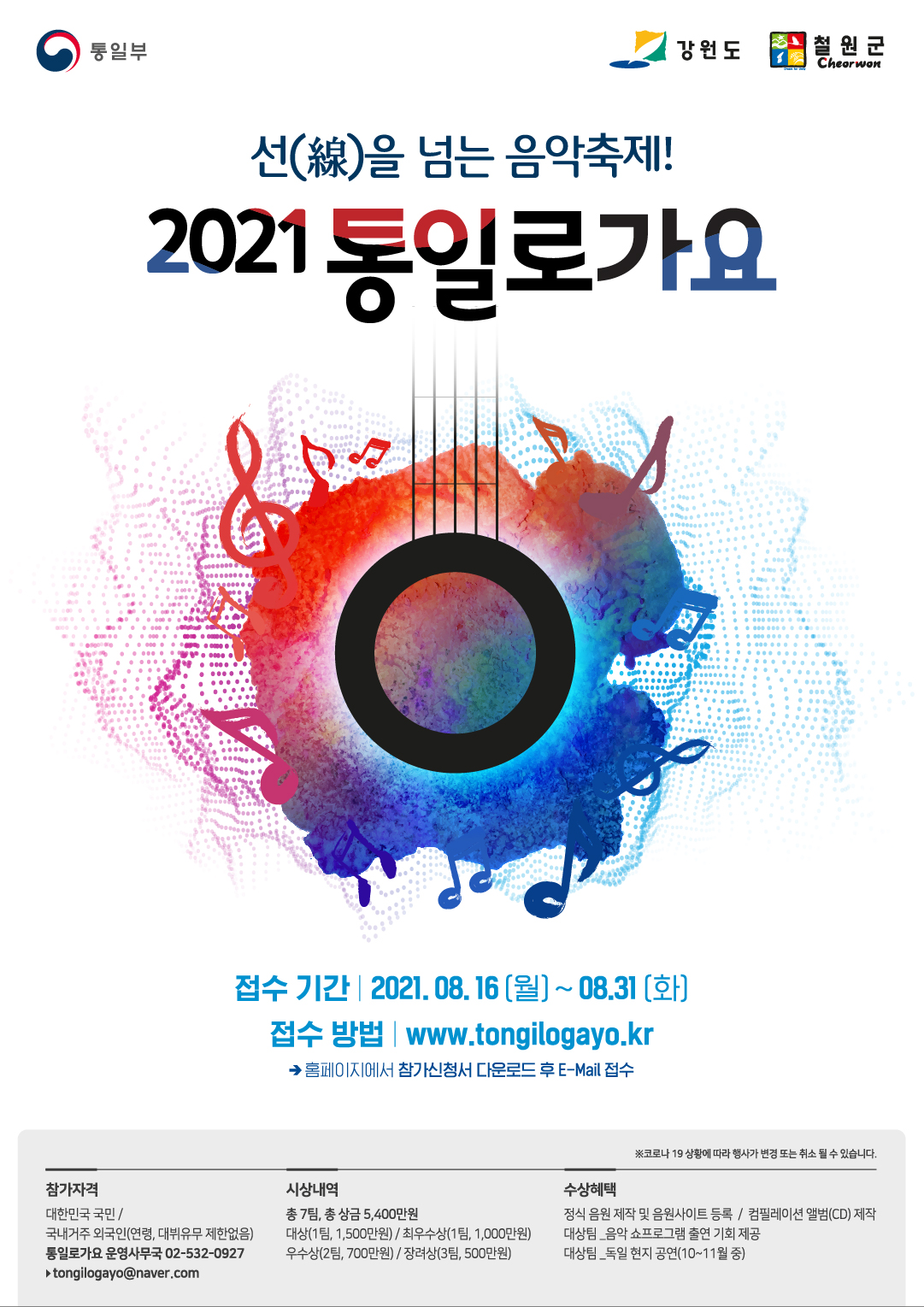 - 통일로가요 홈페이지에서 참가신청서 다운로드 후 이메일 접수