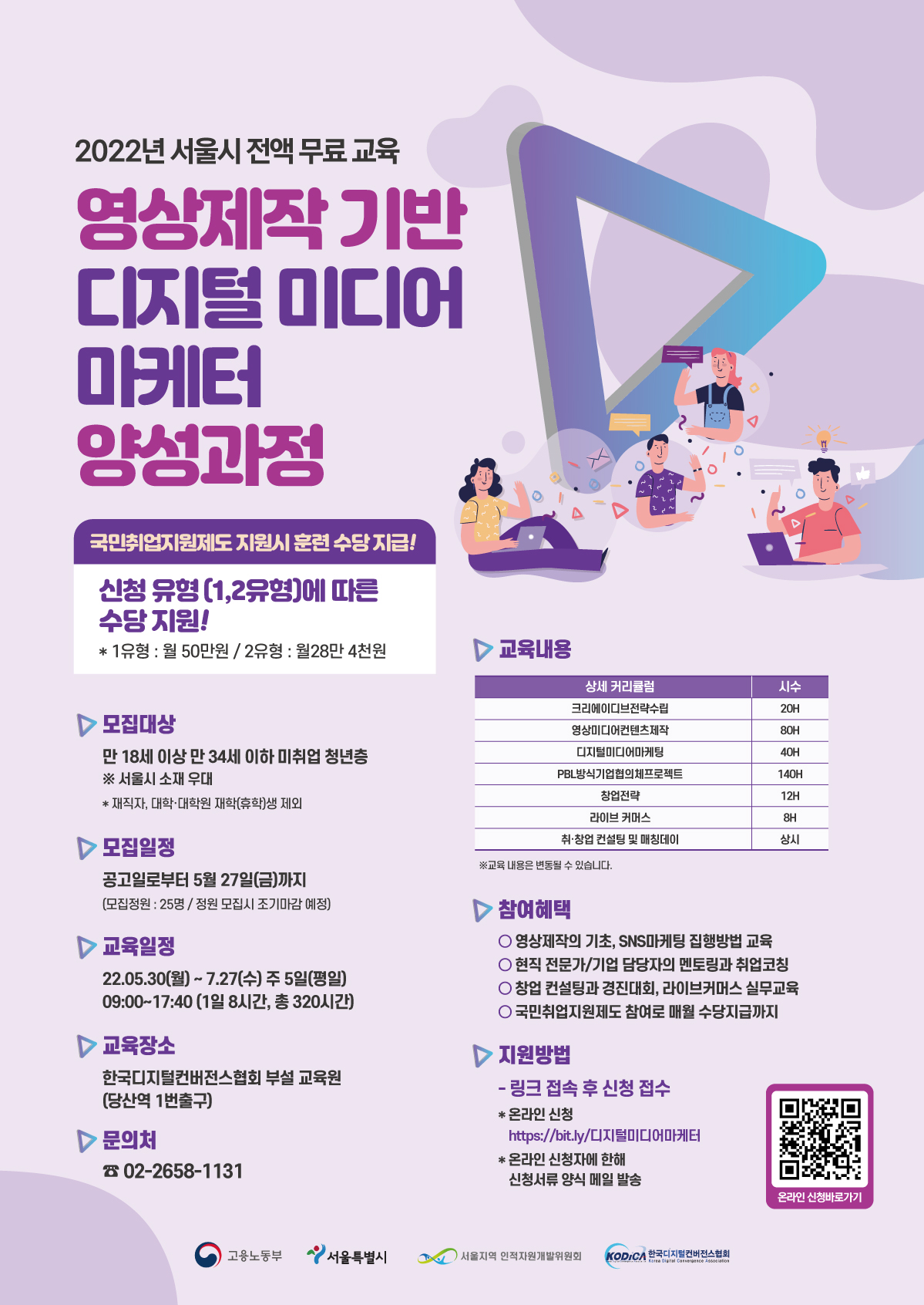 [고용노동부X서울시] 영상제작기반 디지털미디어마케터 취업연계과정 참여자 모집