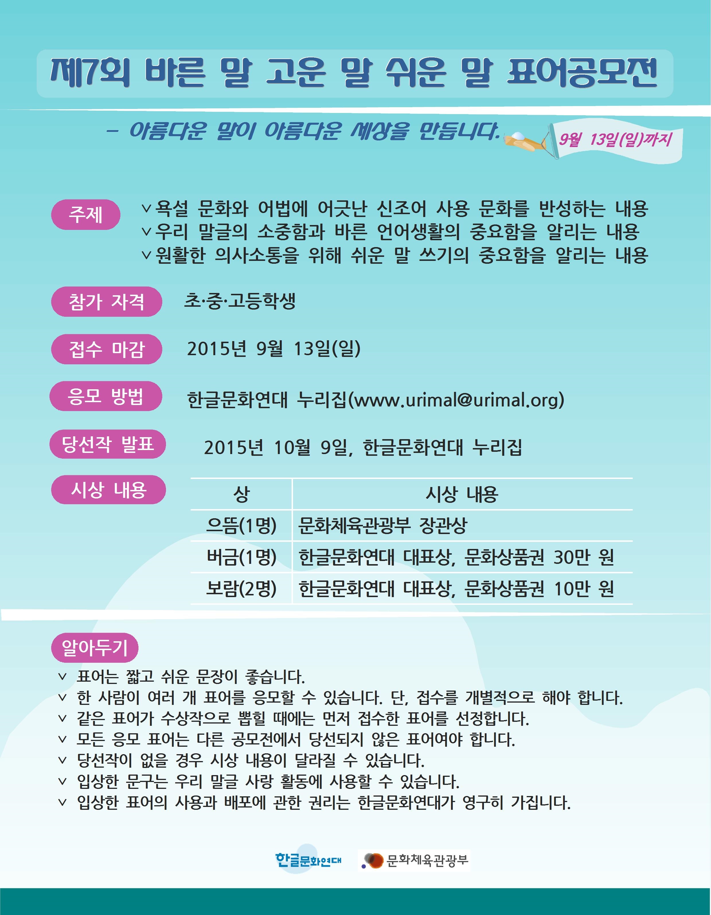 - 입상한 문구는 우리 말글 사랑 활동에 사용할 수 있습니다.