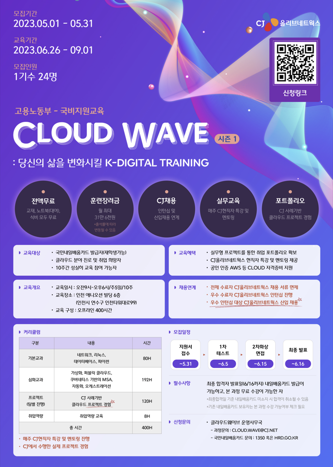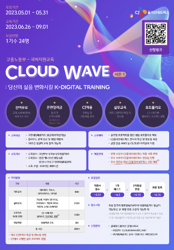 [CJ올리브네트웍스] Cloud Wave 교육생 모집(~5/31)-국비지원무료과정