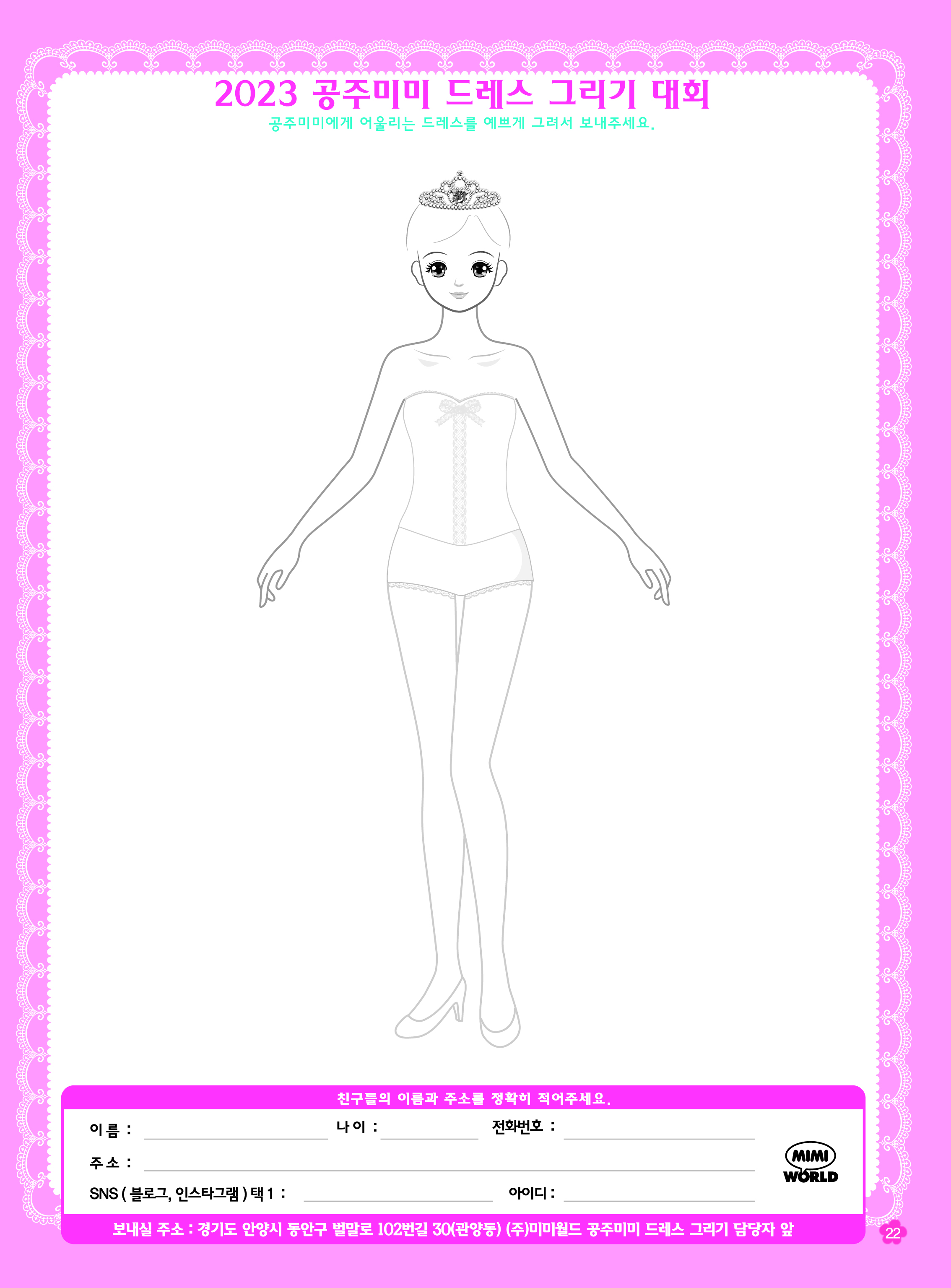 2. 응모용지에 내가 미미에게 입혀주고 싶은 드레스를 자유롭게 그려주세요!
