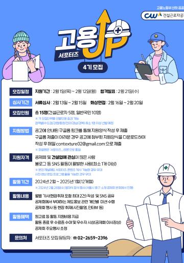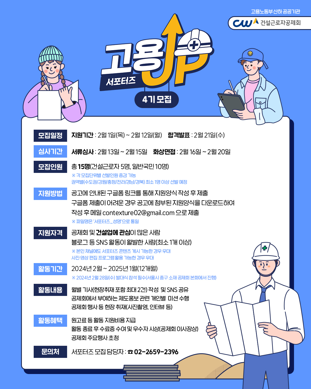 건설근로자 고용UP 서포터즈 4기를 모집합니다.