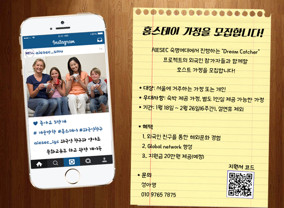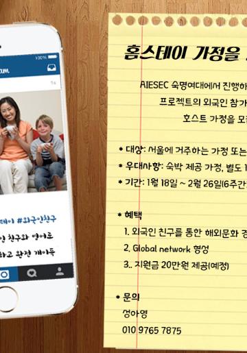 AISEC 숙명여자대학교에서 홈스테이를 모집합니다