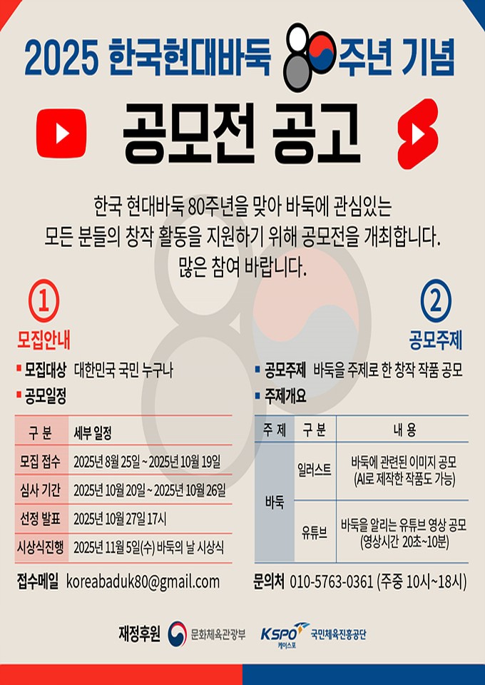 - 이메일 주소: koreabaduk80@gmail.com ※ 이메일 일러스트, 영상 파일 첨부