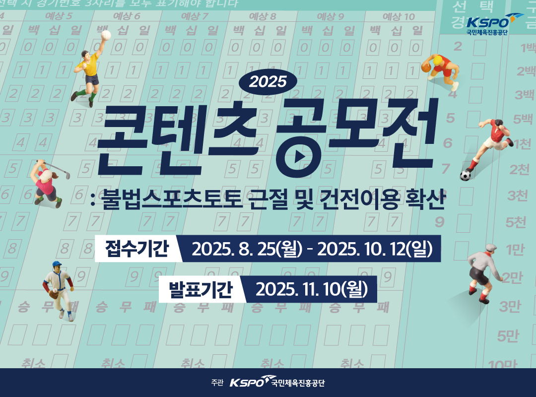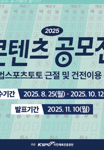 불법스포츠도박으로 인한 사회적 피해를 예방하고 건전하게 스포츠토토를 즐길 수 있도록 다양한 형태의 메시지를 전달하는 대국민 콘텐츠 공모전입니다. 아래 주제 중 하나를 선택해 숏폼, 포스터, 웹툰 등의 형태로 여러분의 창의적인 시선으로 표현해 주세요.