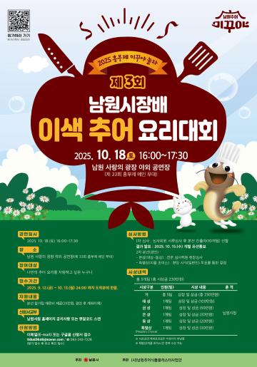 ※ 메일제목 : 예시) 남원시장배 이색추어요리대회 참가신청 – ○○○(대표자 이름)