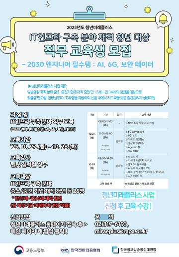2025 청년미래플러스 IT인프라 구축 분야 재직 청년 대상 직무 교육생 모집