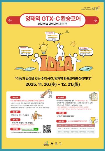 ※ “환승코어”를 더 창의적이고 매력적인 공간으로 만들기 위하여 K-컬처, 직장인 쉼터, 관광객 유치, 양재역 랜드마크 등 자유로운 컨셉 공모