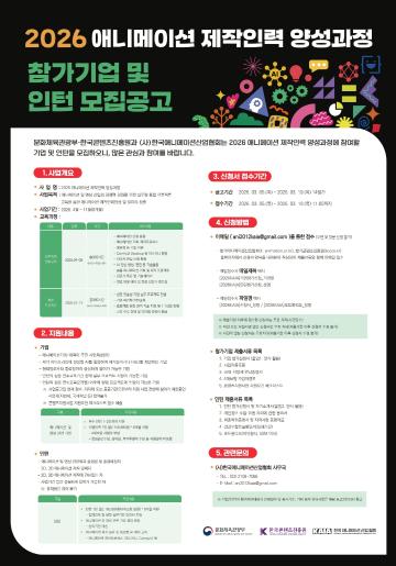 2026 애니메이션 제작인력 양성과정 참가 인턴 모집