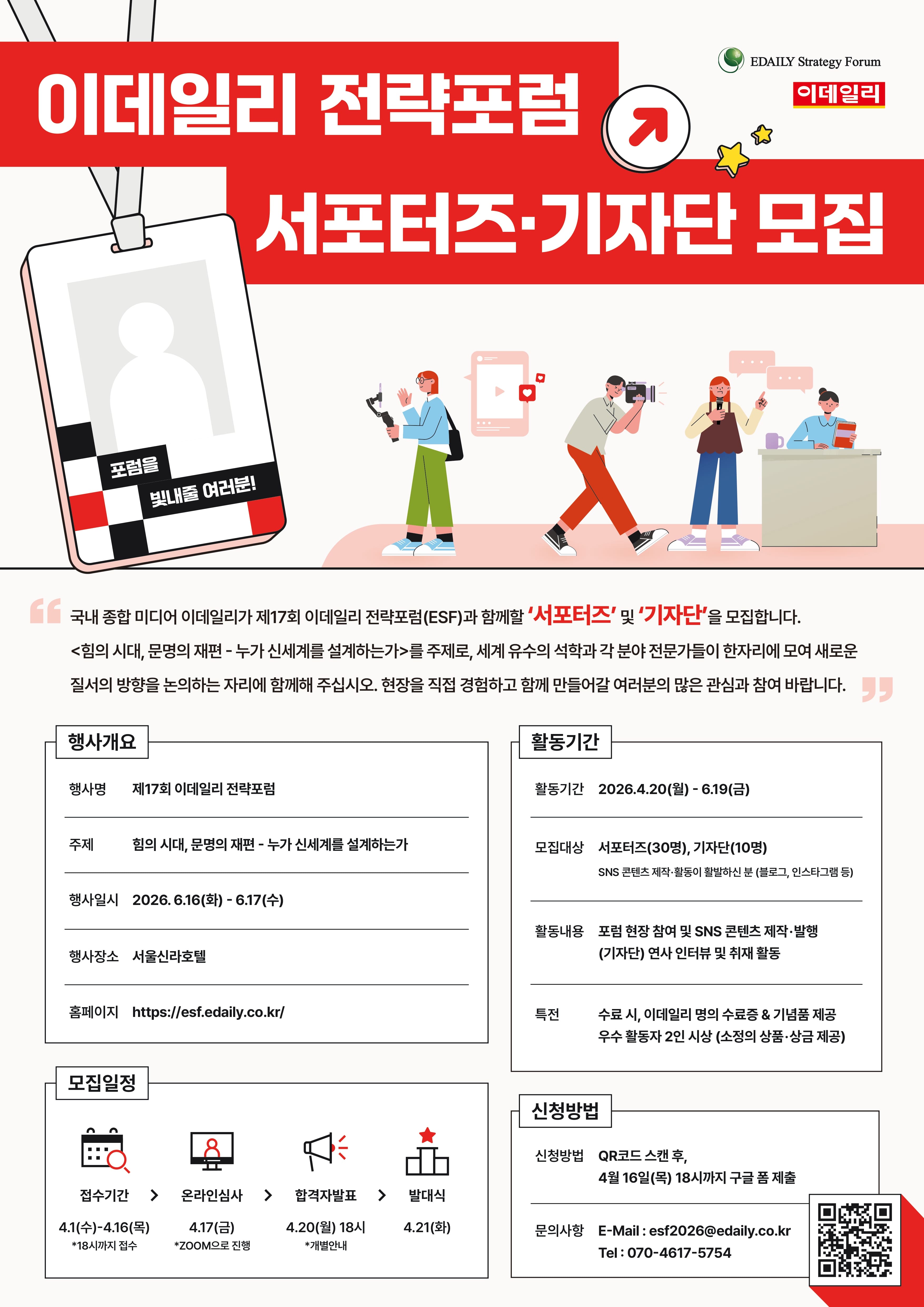 제17회 [이데일리 전략포럼]과 함께할 서포터즈 & 기자단을 모집합니다!