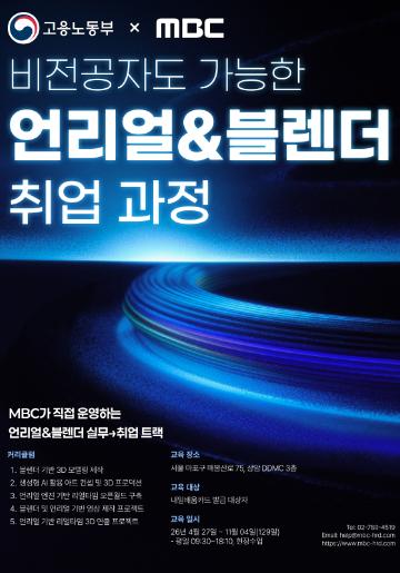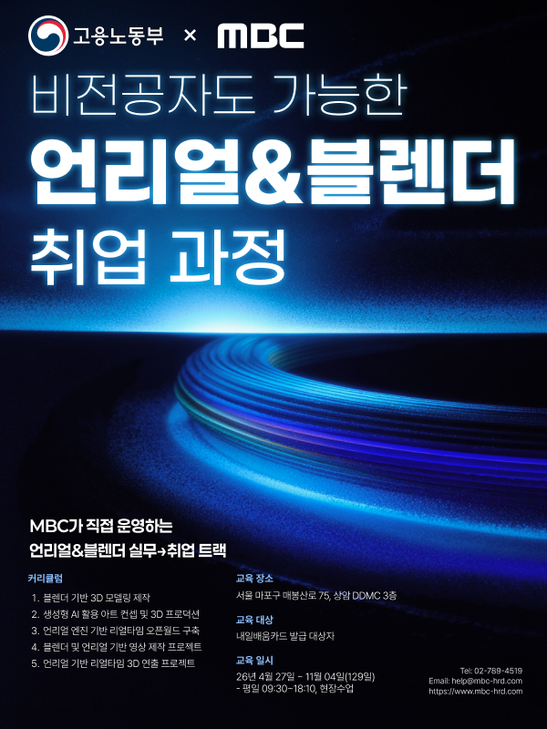 비전공자도 가능한 MBC 언리얼&블렌더 전문가 과정 교육생 모집!