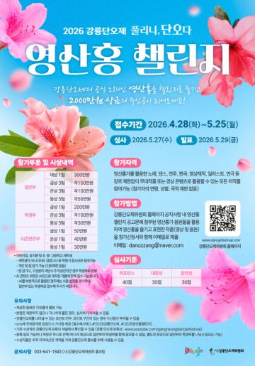 - SNS 업로드 시 가산점 제공(전체공개만 가능, 해시태그 #2026강릉단오제 #2026영산홍챌린지 포함할 것)