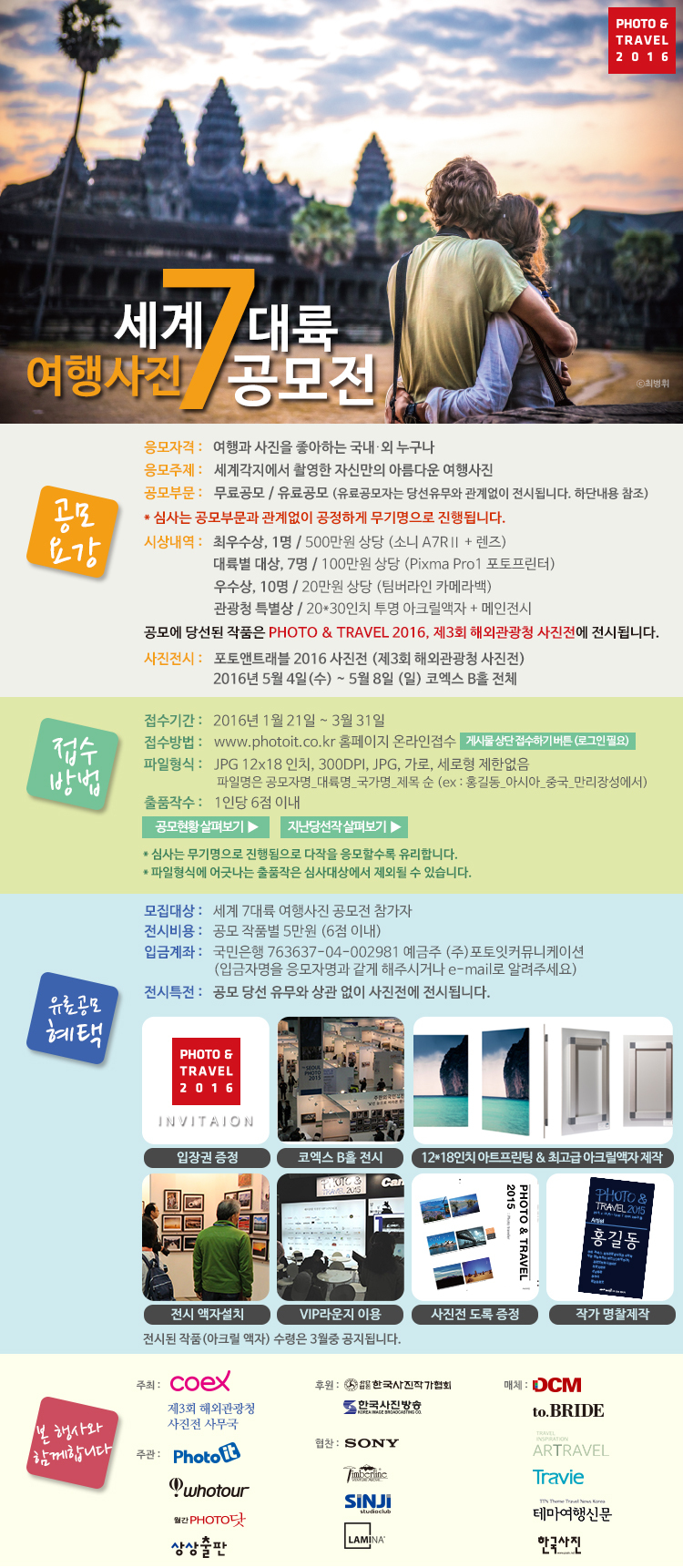 - 코엑스 서울국제사진영상기자재전(P& I 2016) 內 B홀 제3회 해외 관광청 사진전