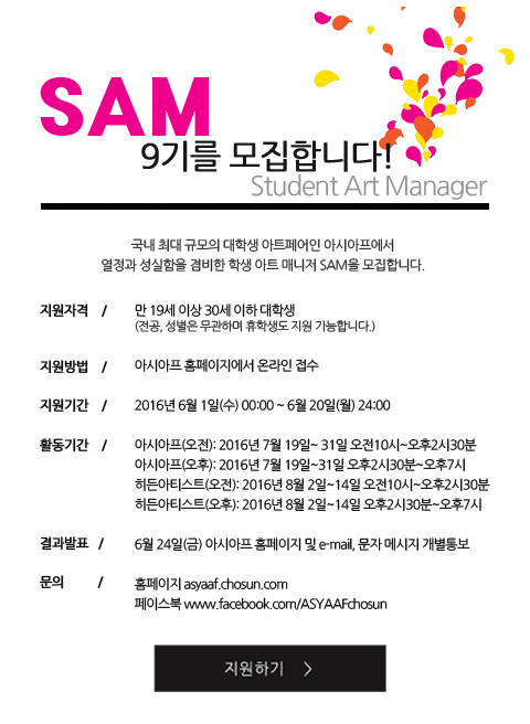 ‘2016 아시아프 & 히든아티스트 페스티벌’SAM(Student Art Manager:학생아트매니저) 9기를 모집합니다!