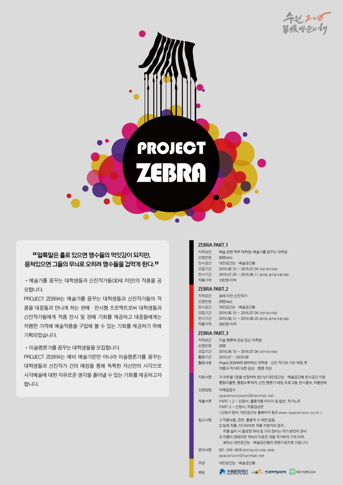 Proejct ZEBRA 2016 대학생/신진작가 아트페어 참가모집